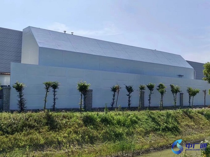 本項目位于,上海市嘉定區華亭鎮華業路666號,靠近廠界有8臺冷卻塔需要進行噪聲治理,方案是在冷卻塔靠近墻的一側和西側進行聲屏障包圍的方式來處理噪聲,可以有效降低冷卻塔運行時的噪聲對周圍環境的影響。隔聲屏障可以采用鋼板、玻璃纖維等材料制成,根據實際情況選擇合適的材料和高度。