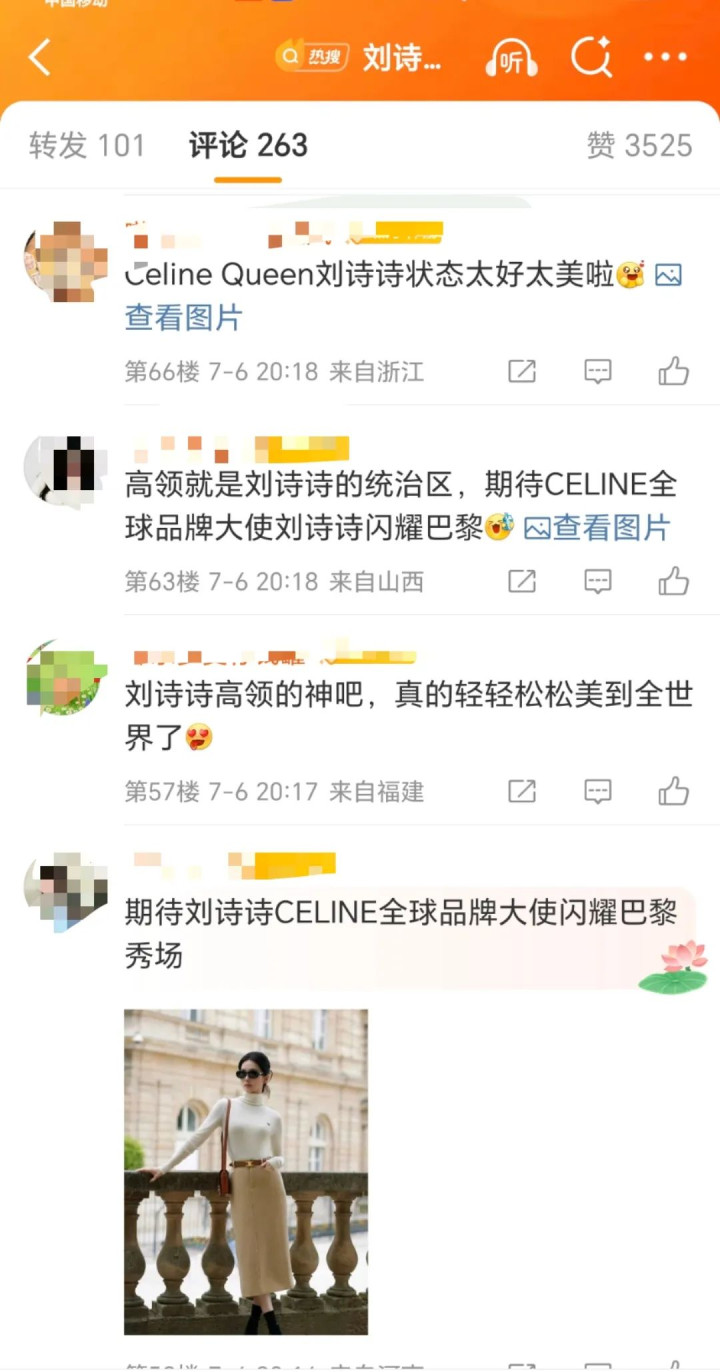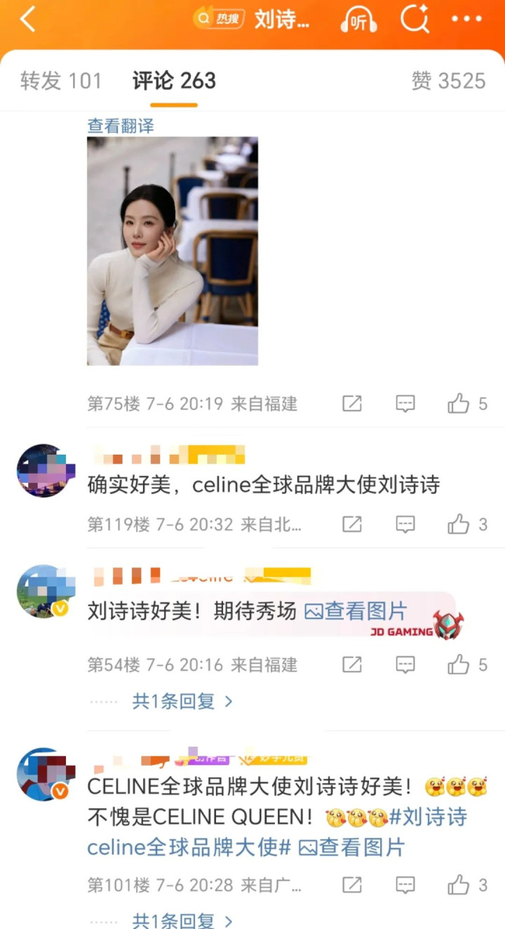 2025年CELINE巴黎大秀,刘诗诗以 CELINE全球品牌大使(品牌最高代言人)身份出席大秀,这是CELINE时隔4年重返T台的首秀,国际关注度极高。